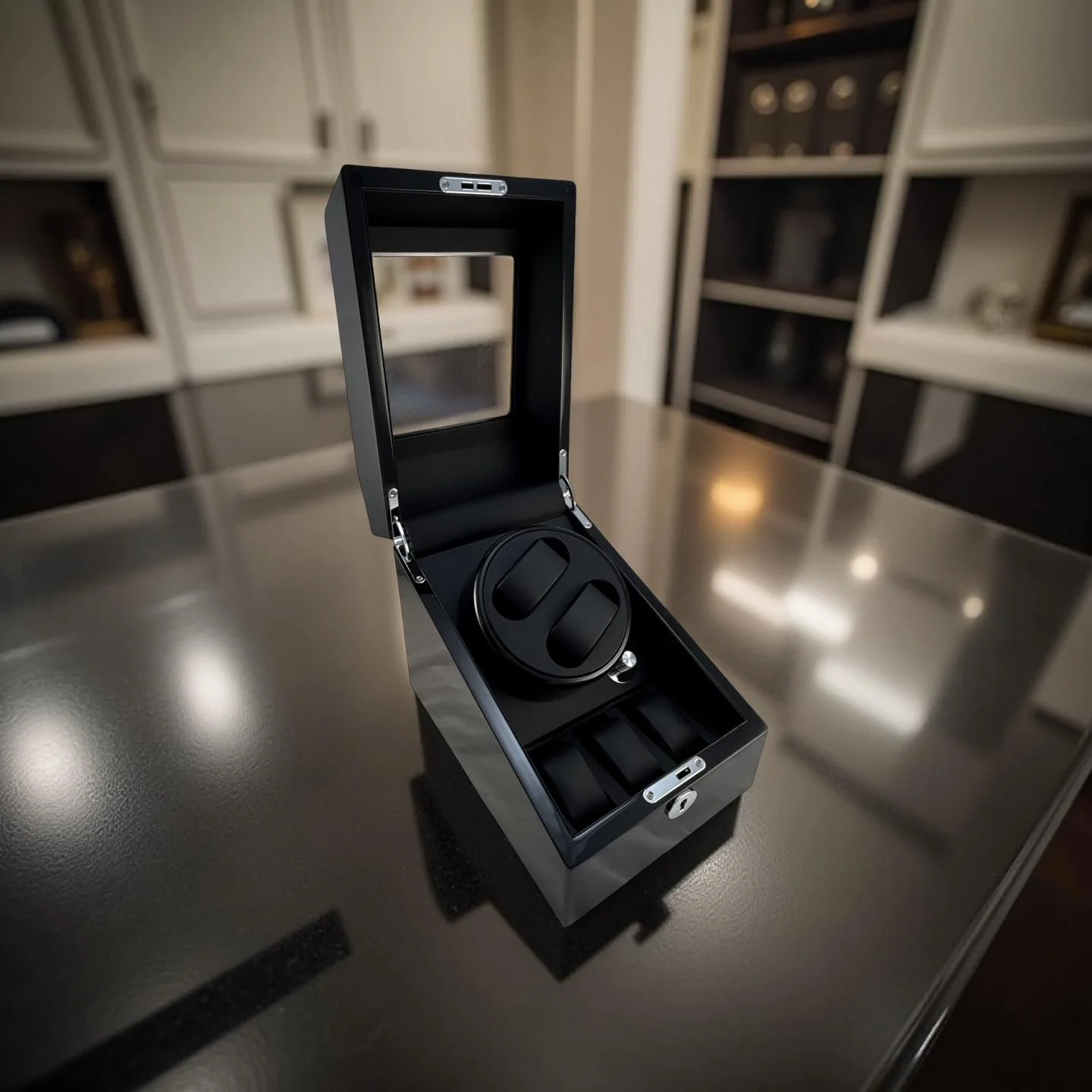 BX-636, Single (2) Watch Winder Glossy Black MDF Smooth Finish + 3 Watch Storage