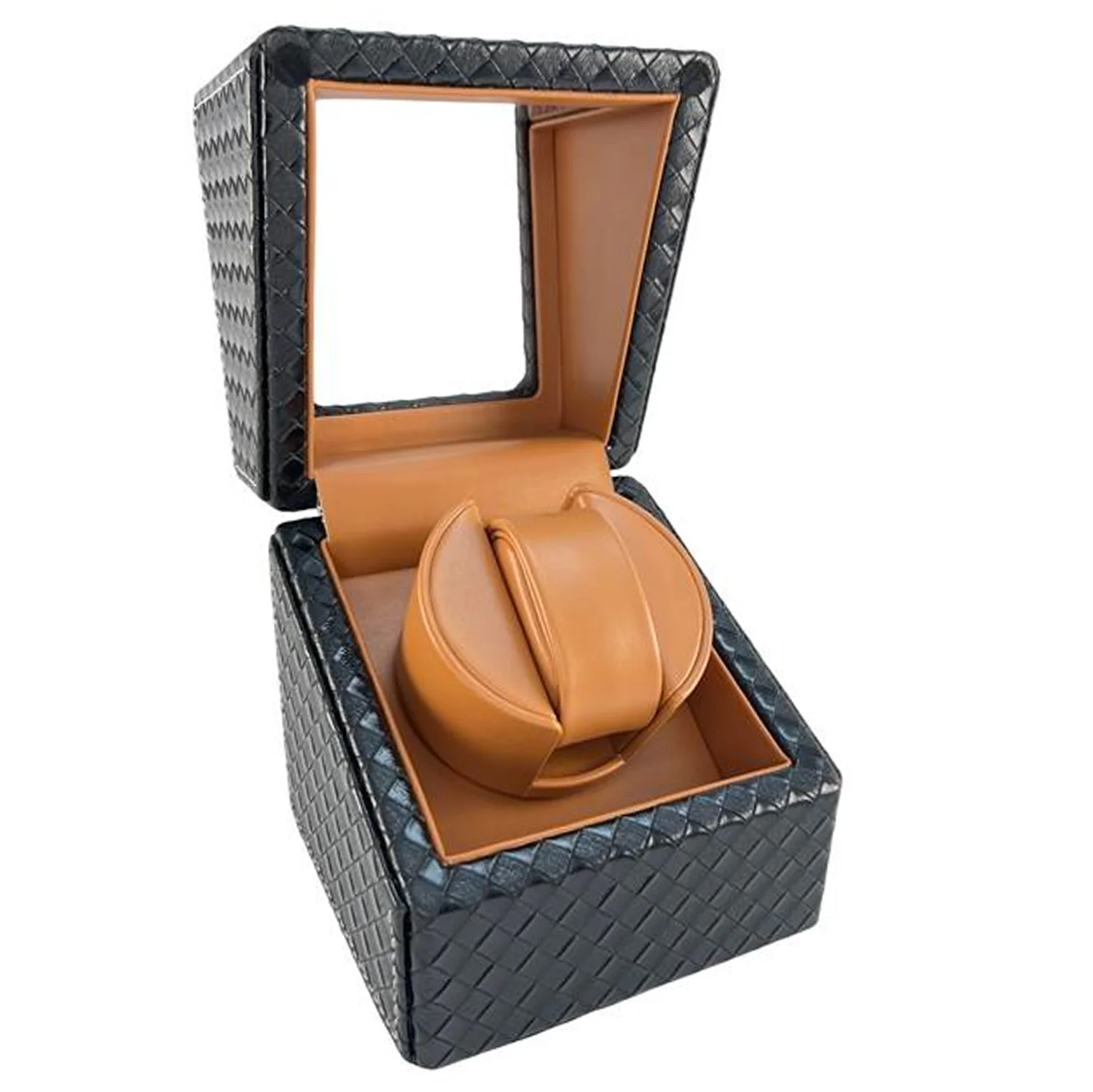 Single (1) Watch Winder Woven Black Matt MDF Polyurethane Leather (Various Colors)